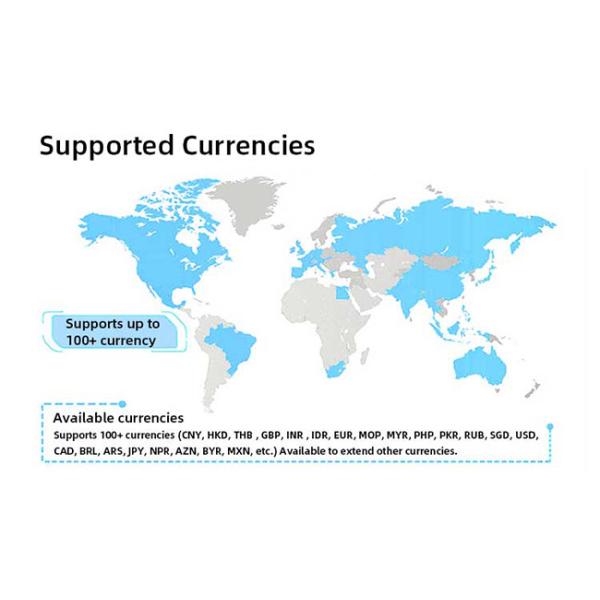 -Support up to 100+ currencies, such as USD, EUR, GBP, etc.